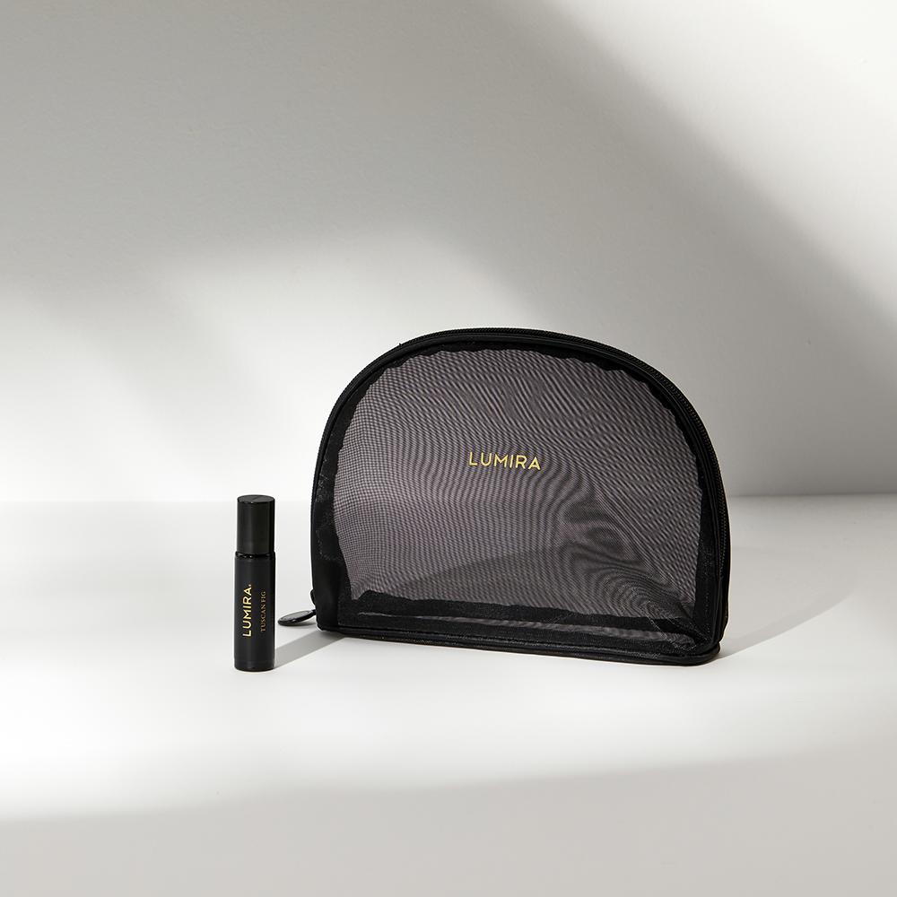 Supporting the launch of the Travel collection from the Australia Fragrance label LUMIRA, a limited edition pouch is developed to accompany their mini travel candles and in-flight friendly roll on perfume. Light weight, see through and durable, this travel size candle, perfume and pouch makes perfectly scented travel companions.